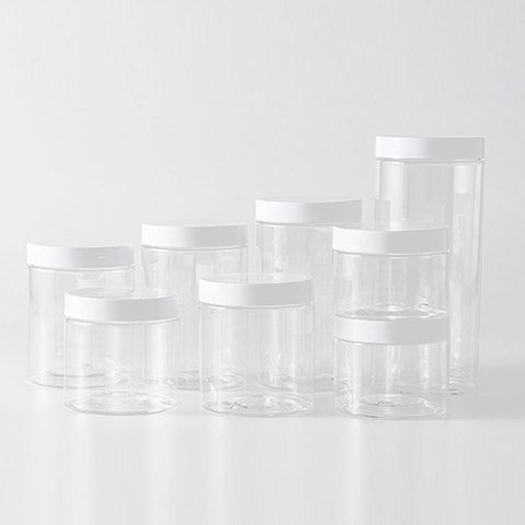 Toptan gıda sınıfı 100g 120g 150g 200g 250g 300g 400g 500g amber temizle PET plastik kavanoz alüminyum plastik vidalı kapak